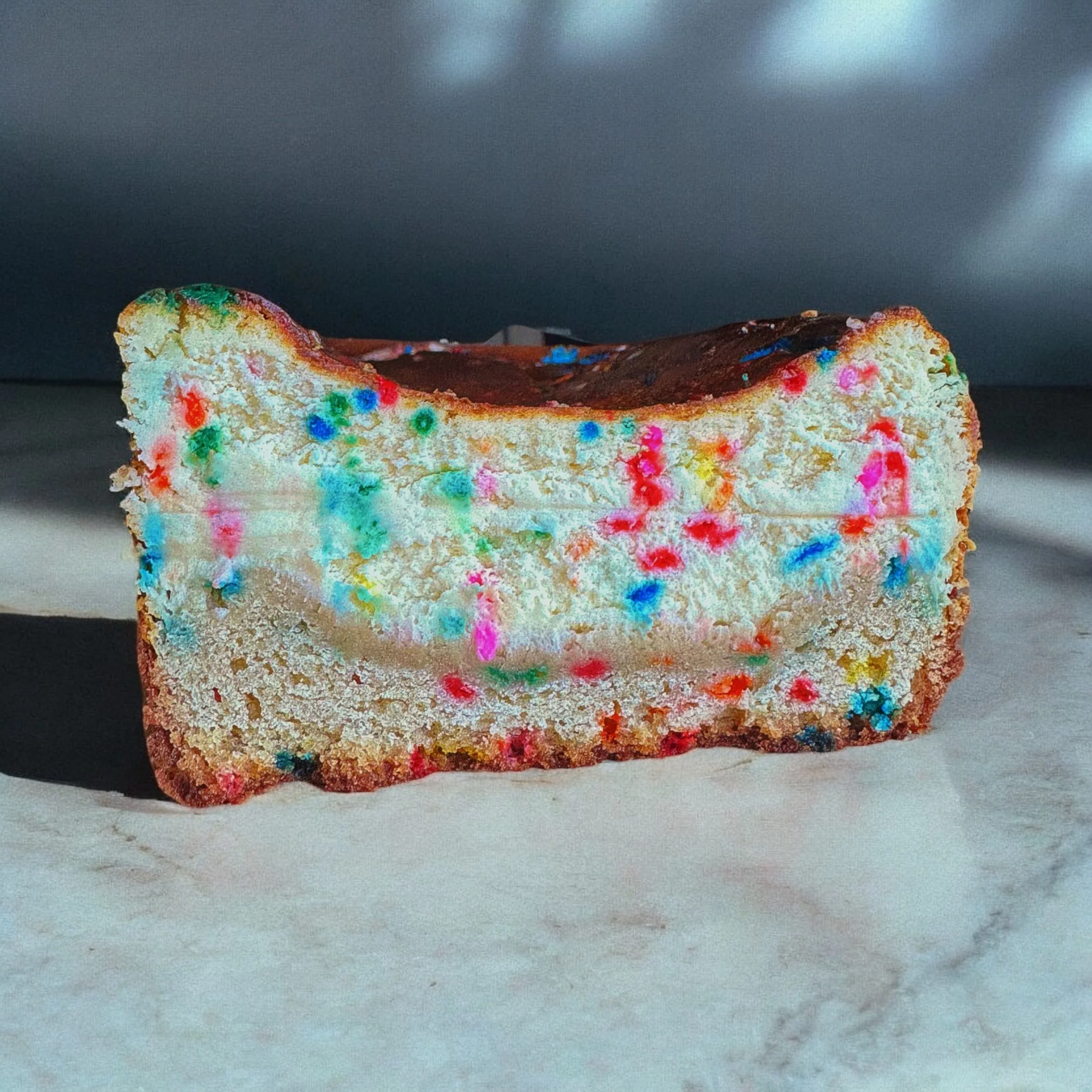 This Birthday Cake Cheesecake Loaf is a vibrant, celebration-worthy dessert with a chewy sprinkle blondie base and a rich, creamy Basque-style cheesecake baked right on top. It’s a nostalgic fusion of funfetti flavor and indulgent cheesecake texture—baked golden in a loaf pan and bursting with rainbow jimmies throughout.