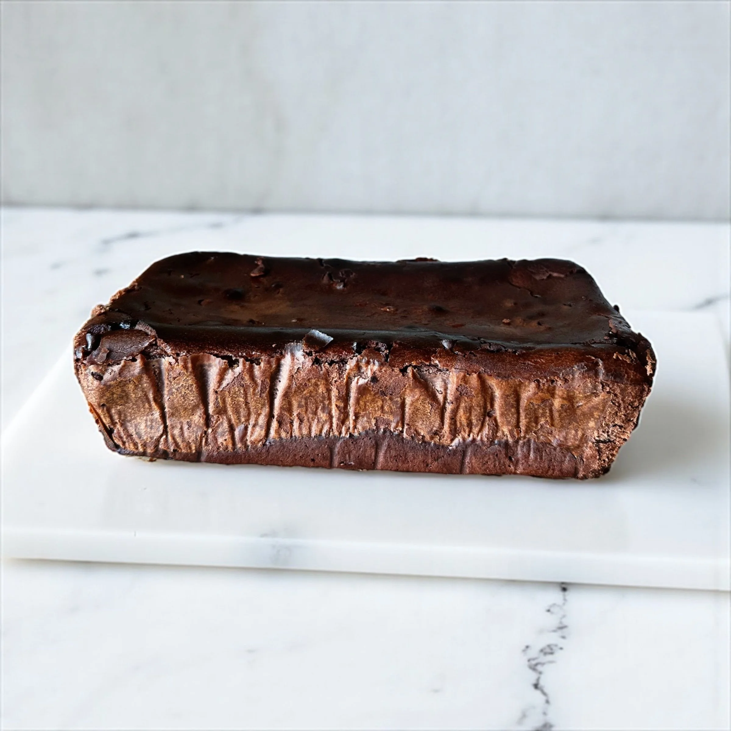 Inspired by the classic burnt Basque cheesecake but taken to coffee shop levels of indulgence, this loaf features a brownie-style bottom with real melted chocolate, Dutch-process cocoa, and brown sugar for an intense bite. The cheesecake layer is espresso-kissed and chocolate-forward with a deep, roasted flavor that’s balanced by cream and cornstarch for a silky finish.